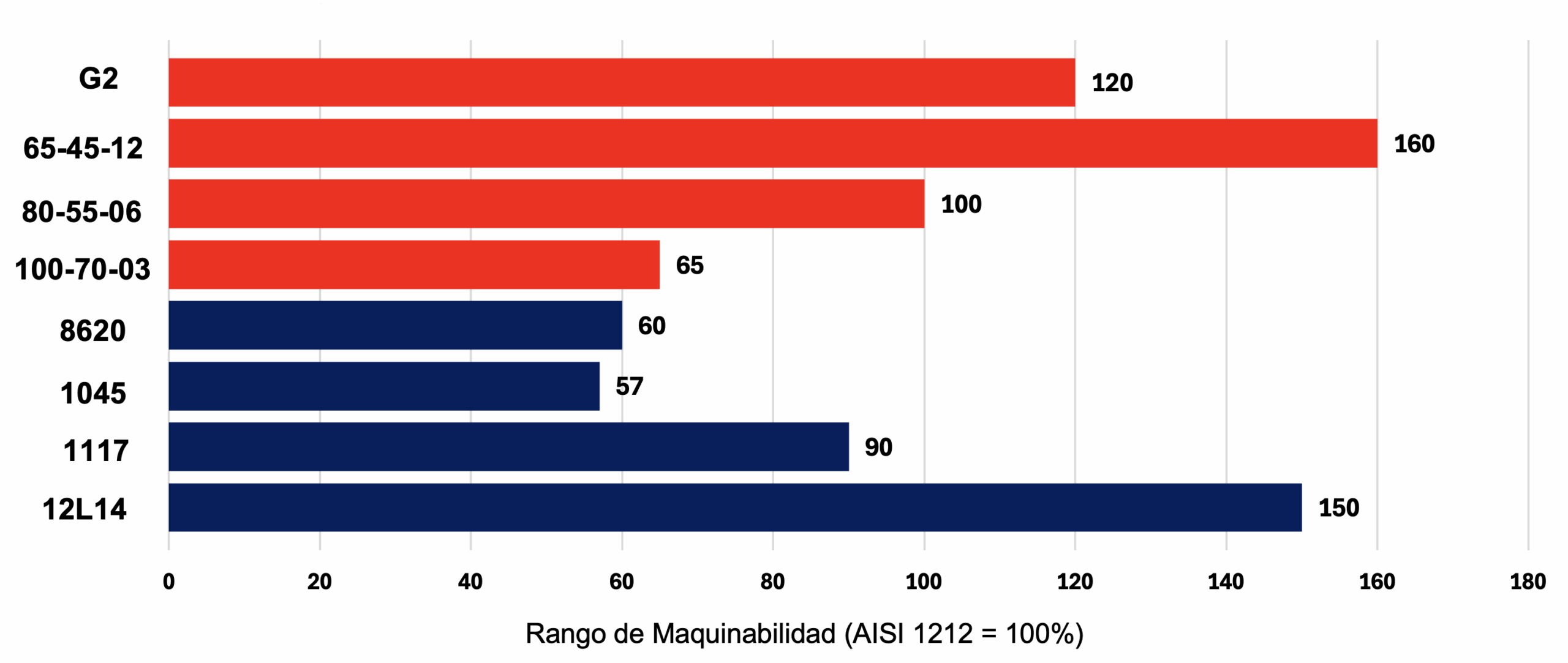Comparativo de rangos de maquinabilidad: