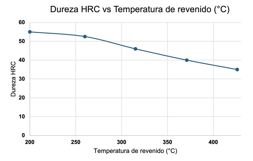 Dureza HRC vs Temperatura de revenido.